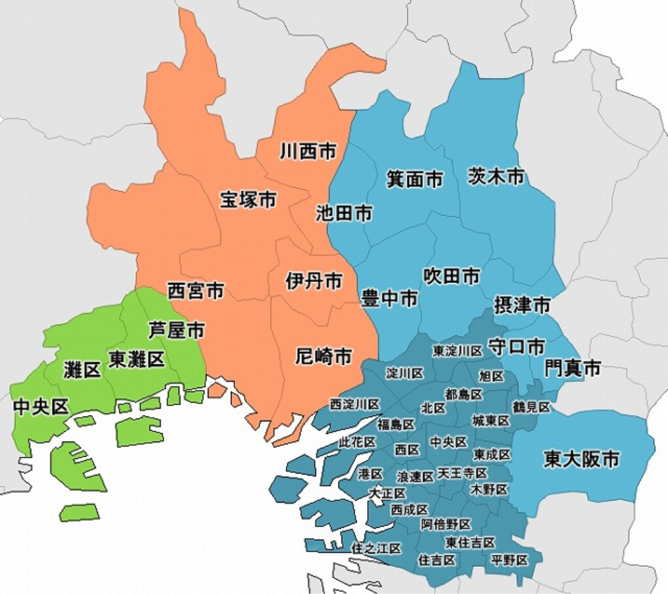 - 豊中市/池⽥市/箕⾯市/吹⽥市/茨⽊市/摂津市/守⼝市/⾨真市/東⼤阪市/⼤阪市